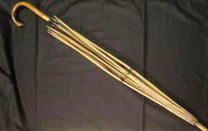 Ist ein Schirm, der in einem Stock verborgen ist. Stützschirme: Eine elegante Gehhilfe. In jeder Länge zu erhalten, praktisch und elgant. Schirmgriffe wurden früher aber auch heute noch aus edlen Materialien hergestellt. Den Klassenunterschied erkannte man am Schirmgriff. Qualitativ hochwertige Schirmgestelle wurden nur aus bestem Stahl hergestellt. Für die Restauration von antiken Uhren benötigt man Schirmschienen (zum Drehen neuer Wellen) einer Stahlqualität in welcher wir auch heute noch Schirme erzeugen. (Vollschienen) |